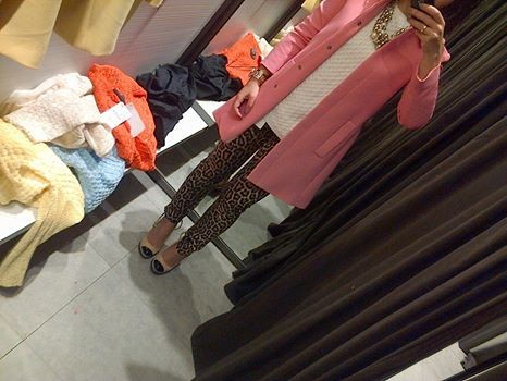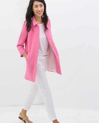 Uma camisola básica branca que fica bem em todos os looks e é ideal para estes dias ainda frescos; as famosas calças tigrese, às quais tentei resistir mas que acabei por trazer e a grande compra desta Primavera, um casaco rosa lindo acabadinho de chegar às lojas e apetecível. Foi amor à primeira vista! Assim que entrei na loja fui automaticamente atraída para ele e não o larguei mais. Depois de ter procurado pelo casaco coral e me ter desiludido com a qualidade do tecido e modelo, comprei um amarelão que também está a fazer furor nas lojas e de que gostei bastante apesar do atrevimento da cor. Mas assim que vi este rosa, o amarelo voltou à loja e este fica a alegrar a minha primavera. Claro que o ideal seria ficar com os dois, mas há que manter a contenção financeira e quem sabe nos saldos ainda nos voltaremos a encontrar.